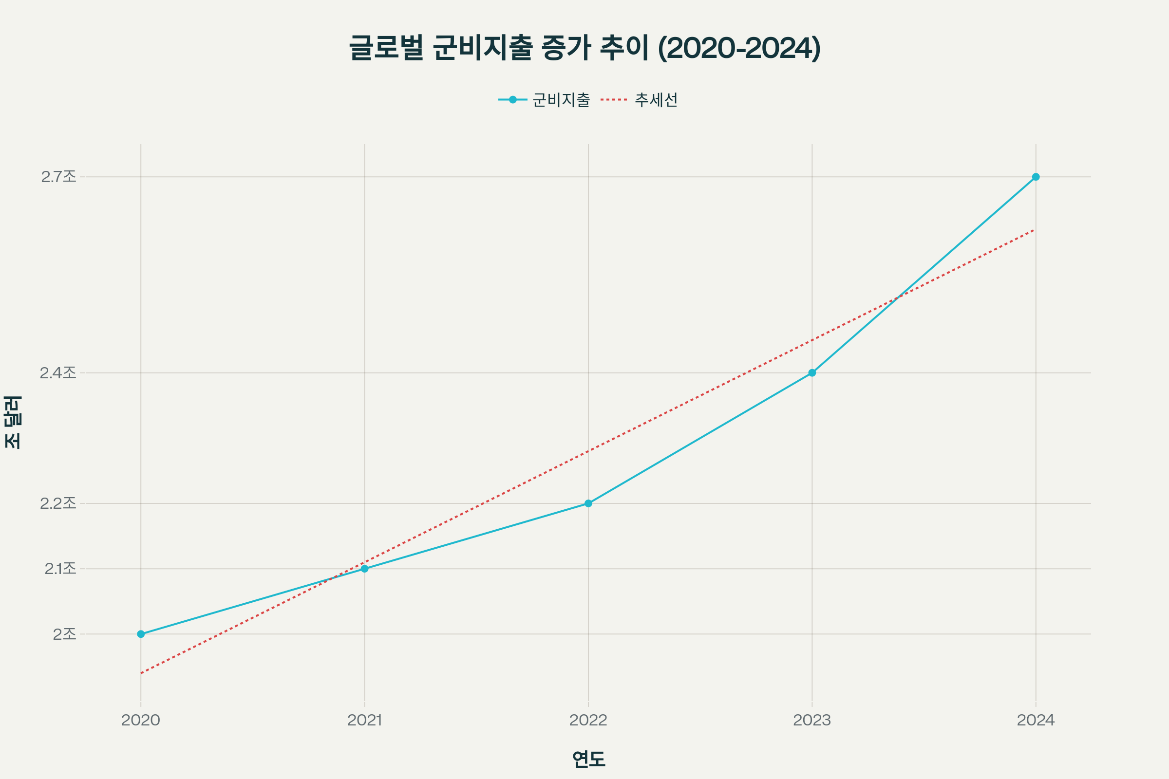 러시아-우크라이나 전쟁의 장기화와 중동 분쟁의 지속으로 인해 각국의 방위비 증액이 불가피한 상황입니다. 미중 전략경쟁의 심화도 아시아태평양 지역의 군비 증강을 가속화하고 있습니다.